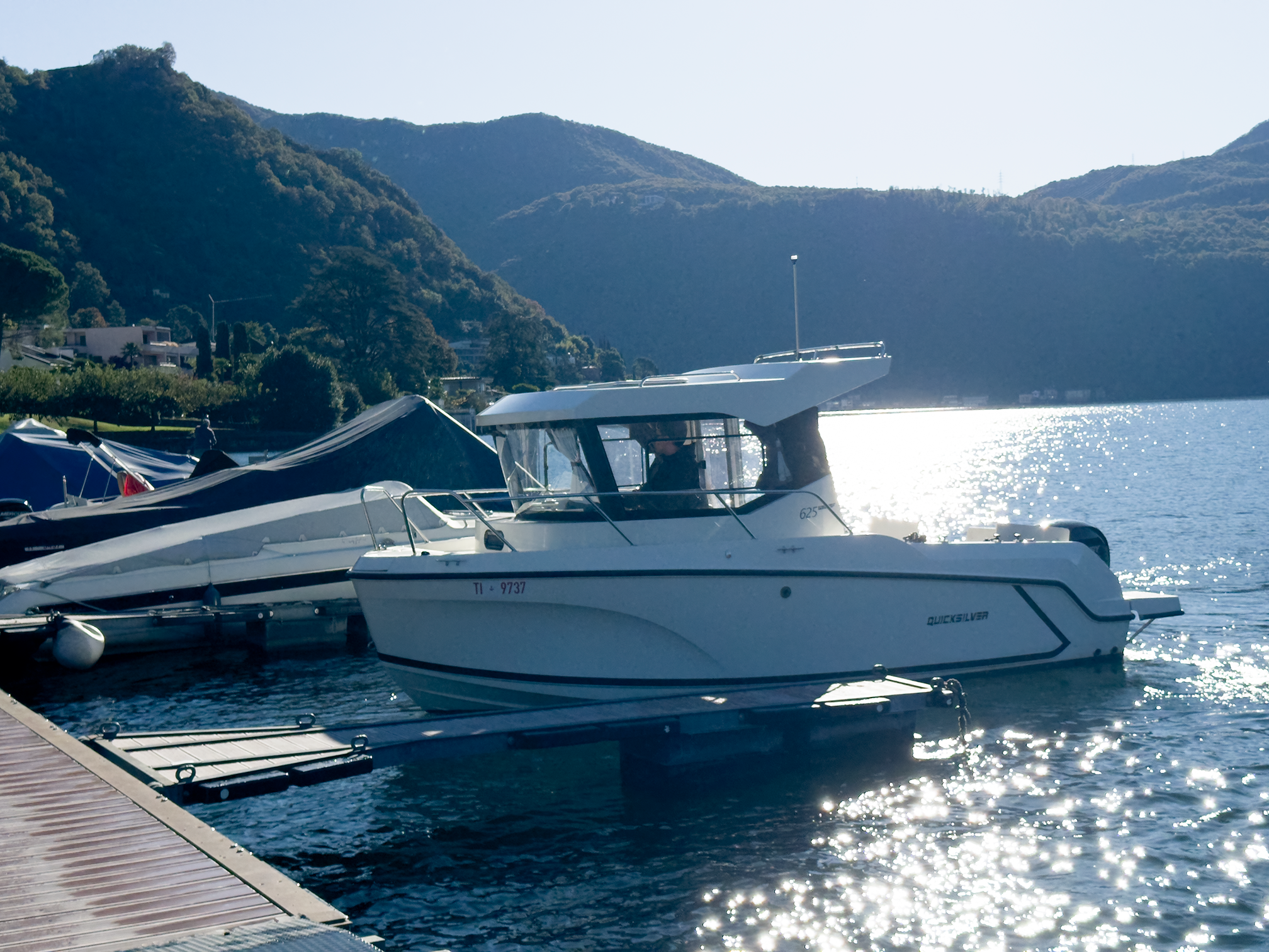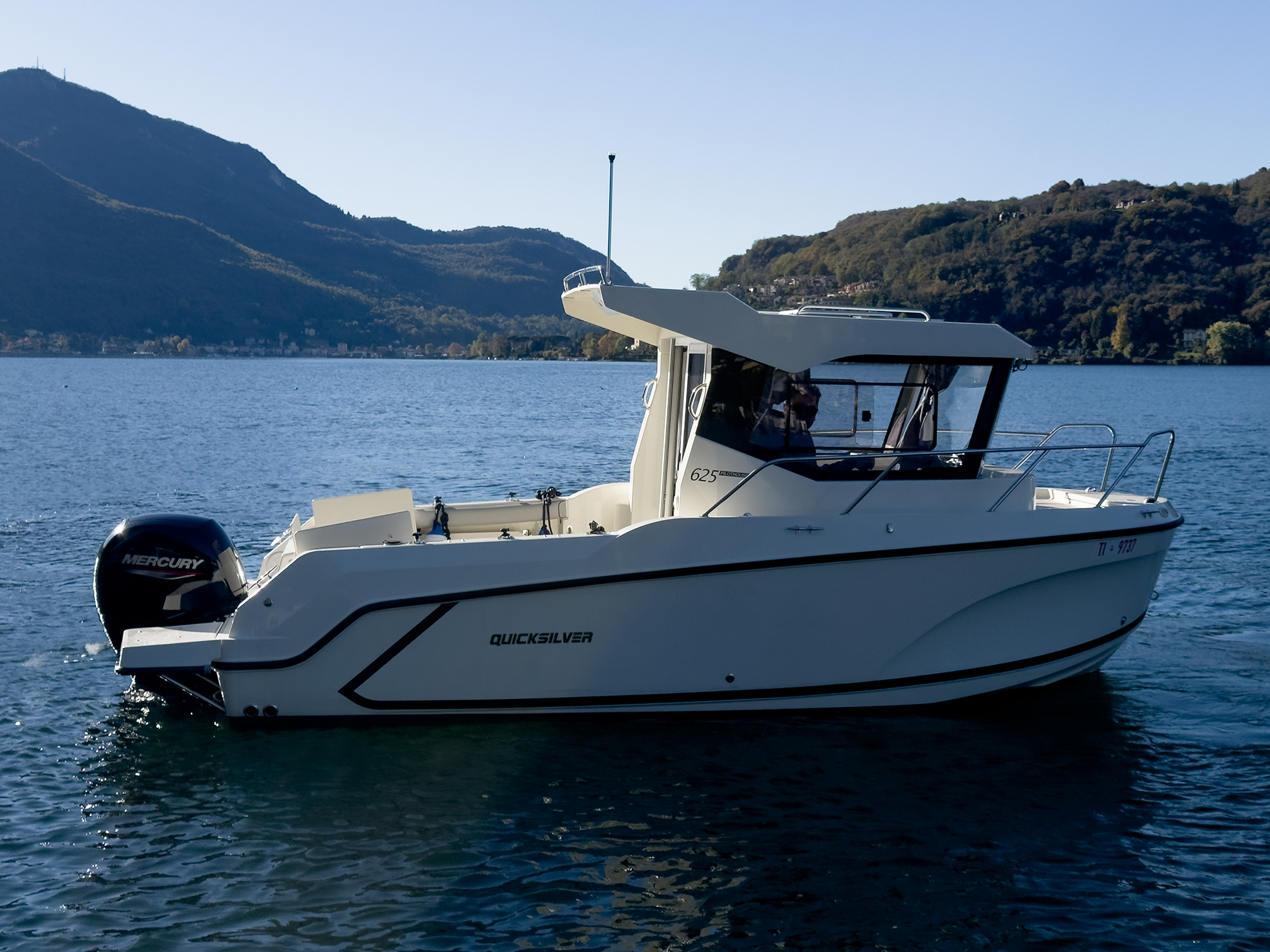 La nostra Quicksilver 625 Pilothouse è una barca ideale per la formazione e la navigazione sul Lago di Lugano, progettata per offrire comfort, sicurezza e versatilità in qualsiasi condizione meteo.